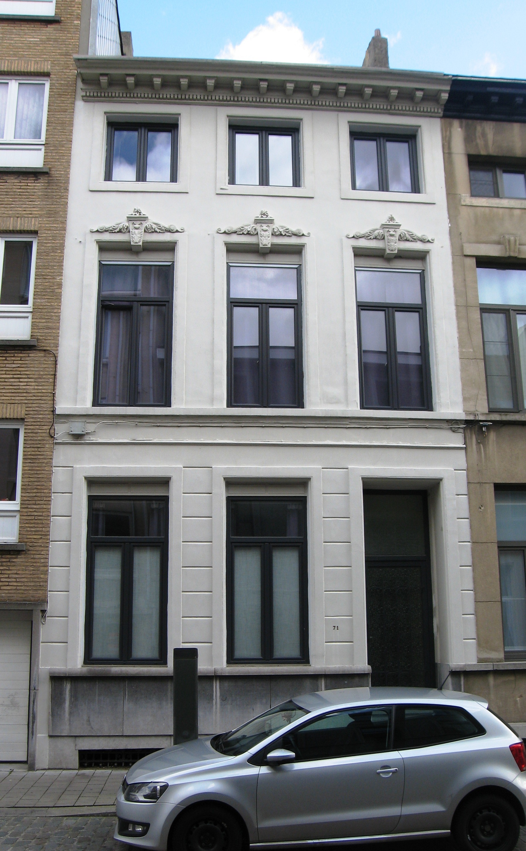De afbeelding 'Antwerpen Sint-Vincentiusstraat 71' gemaakt door Braeken, Jo wordt ter beschikking gesteld door Agentschap Onroerend Erfgoed (AOE) onder de volgende voorwaarden: Modellicentie voor gratis hergebruik, Naamsvermelding 4.0 Internationaal.