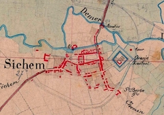 De afbeelding 'Historische stadskern van Zichem' wordt ter beschikking gesteld door Agentschap Onroerend Erfgoed (AOE) onder de volgende voorwaarden: Modellicentie voor gratis hergebruik, Naamsvermelding 4.0 Internationaal.