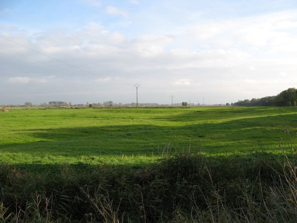 De afbeelding 'IJzervallei tussen Elzendamme en Woumen en Lovaart bij Pollinkhove' gemaakt door de Haan, Aukje wordt ter beschikking gesteld door Agentschap Onroerend Erfgoed (AOE) onder de volgende voorwaarden: Modellicentie voor gratis hergebruik, Naamsvermelding 4.0 Internationaal.