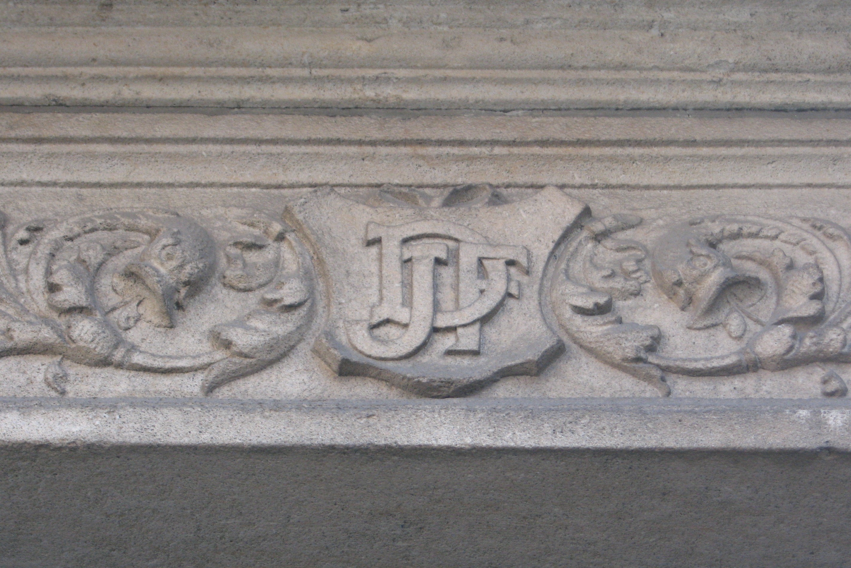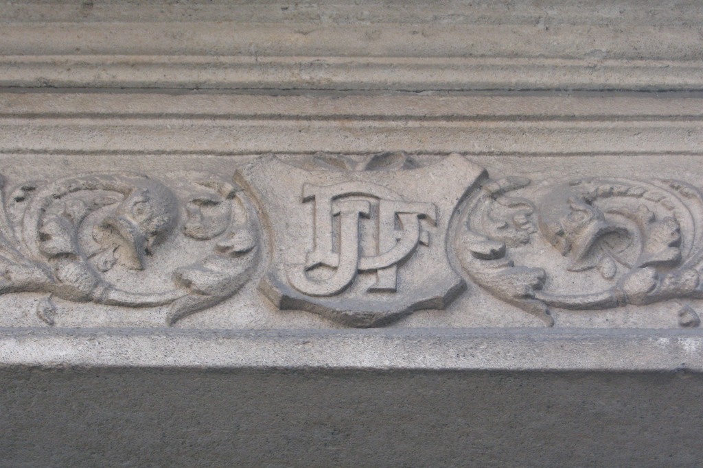 De afbeelding 'Antwerpen Le Grellelei 40 initialen' gemaakt door Braeken, Jo wordt ter beschikking gesteld door Agentschap Onroerend Erfgoed (AOE) onder de volgende voorwaarden: Modellicentie voor gratis hergebruik, Naamsvermelding 4.0 Internationaal.