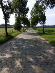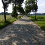 De afbeelding 'Moerbeke Polderstraat gekasseide weg met bomenrijen' gemaakt door Van Caenegem, Annelies wordt ter beschikking gesteld door Agentschap Onroerend Erfgoed (AOE) onder de volgende voorwaarden: Modellicentie voor gratis hergebruik, Naamsvermelding 4.0 Internationaal.