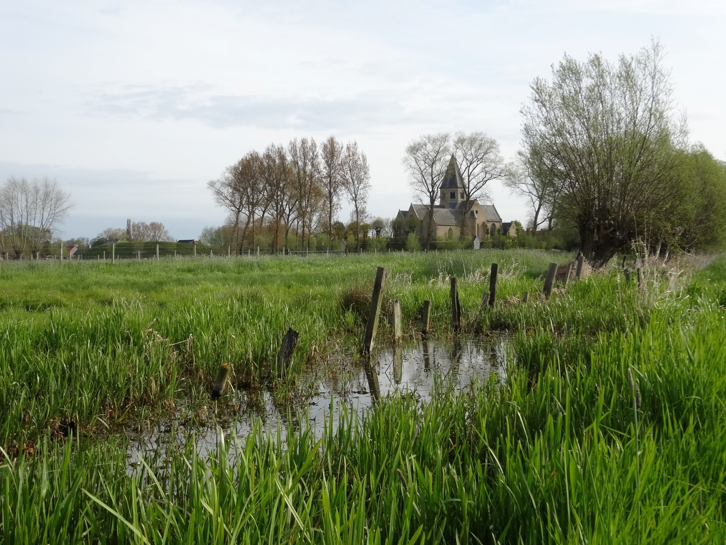 Zicht vanuit de Handzamevallei op de kerk van Werken en de site Hogen Andjoen