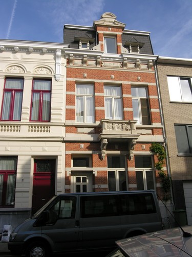 De afbeelding 'Ensemble van twee burgerhuizen' gemaakt door Hooft, Elise wordt ter beschikking gesteld door Agentschap Onroerend Erfgoed (AOE) onder de volgende voorwaarden: Modellicentie voor gratis hergebruik, Naamsvermelding 4.0 Internationaal.