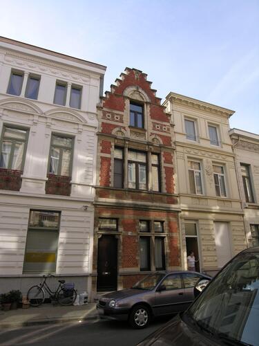 De afbeelding 'Ensemble van zes burgerhuizen' gemaakt door Hooft, Elise wordt ter beschikking gesteld door Agentschap Onroerend Erfgoed (AOE) onder de volgende voorwaarden: Modellicentie voor gratis hergebruik, Naamsvermelding 4.0 Internationaal.