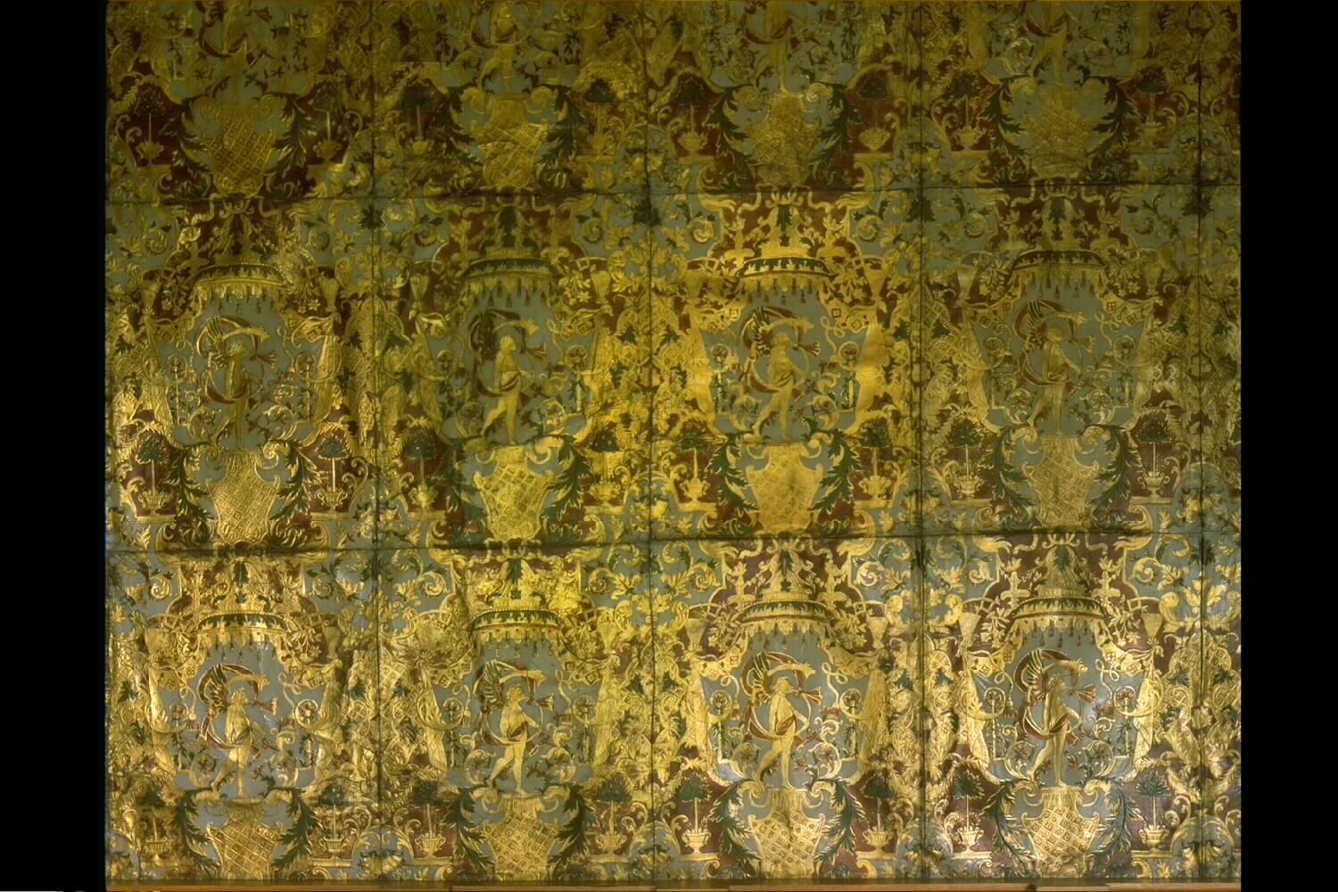 Alle rechten op de afbeelding 'Izegem Kasteel Blauwhuis: interieur, goudleder, detail wand, algemeen zicht' gemaakt door Pauwels, Oswald zijn voorbehouden aan Pauwels, Oswald.