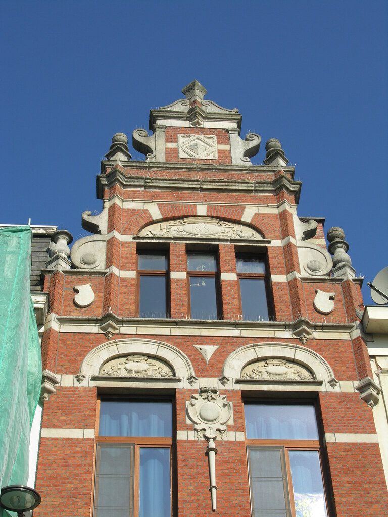 De afbeelding 'Twee winkelhuizen in neo-Vlaamserenaissancestijl' gemaakt door Hooft, Elise wordt ter beschikking gesteld door Agentschap Onroerend Erfgoed (AOE) onder de volgende voorwaarden: Modellicentie voor gratis hergebruik, Naamsvermelding 4.0 Internationaal.