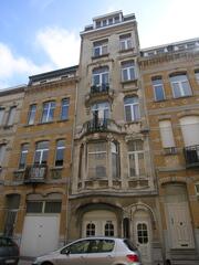 De afbeelding 'Appartementsgebouw in art nouveau' gemaakt door Hooft, Elise wordt ter beschikking gesteld door Agentschap Onroerend Erfgoed (AOE) onder de volgende voorwaarden: Modellicentie voor gratis hergebruik, Naamsvermelding 4.0 Internationaal.