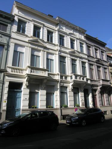 De afbeelding 'Neoclassicistische huizenrij' gemaakt door Hooft, Elise wordt ter beschikking gesteld door Agentschap Onroerend Erfgoed (AOE) onder de volgende voorwaarden: Modellicentie voor gratis hergebruik, Naamsvermelding 4.0 Internationaal.
