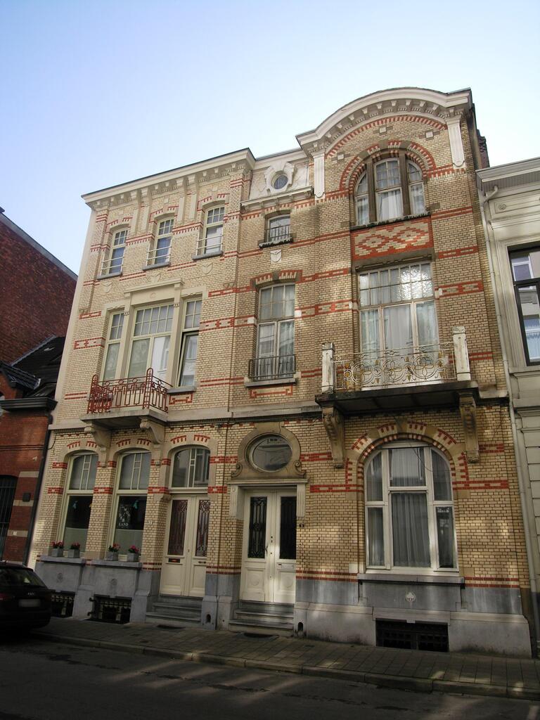 De afbeelding 'Eenheidsbebouwing van twee burgerhuizen' gemaakt door Hooft, Elise wordt ter beschikking gesteld door Agentschap Onroerend Erfgoed (AOE) onder de volgende voorwaarden: Modellicentie voor gratis hergebruik, Naamsvermelding 4.0 Internationaal.
