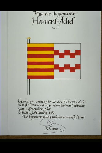 De afbeelding 'Hamont-Achel Vlag' wordt ter beschikking gesteld door Anoniem onder de volgende voorwaarden: Modellicentie voor gratis hergebruik, Naamsvermelding 4.0 Internationaal.