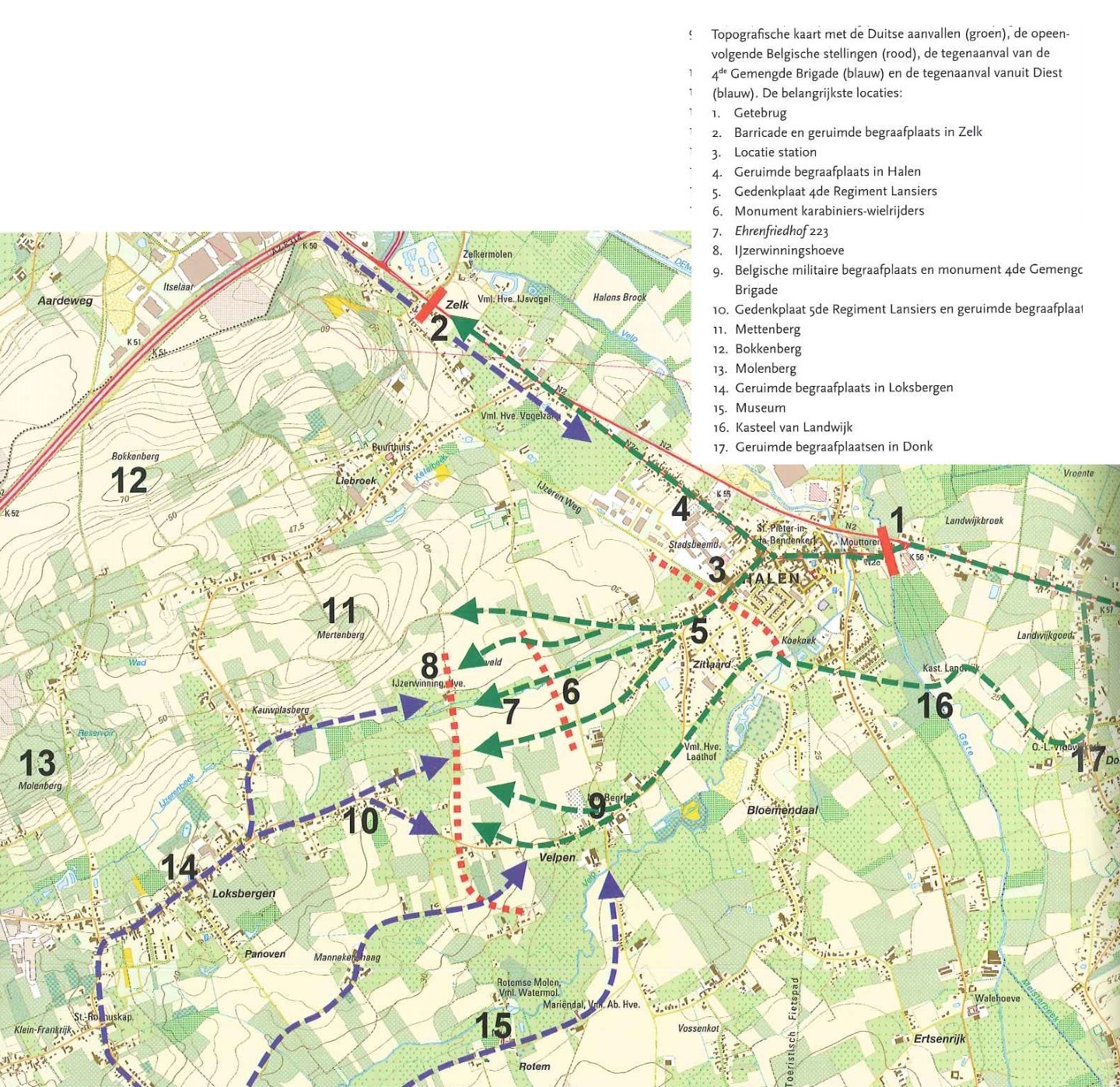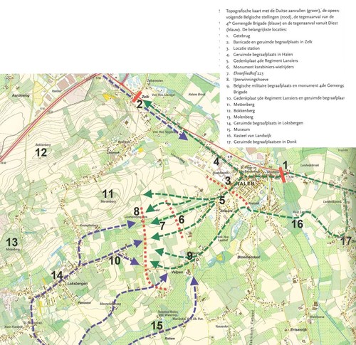 De afbeelding 'Overzicht van gevechtsoperaties op het slagveld van Halen' gemaakt door Van den Hove, Peter wordt ter beschikking gesteld door Agentschap Onroerend Erfgoed (AOE) onder de volgende voorwaarden: Modellicentie voor gratis hergebruik, Naamsvermelding 4.0 Internationaal.