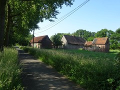 Hoeve met klokkentorentje en oude spoorwegbedding Kortrijk-Avelgem-Ronse