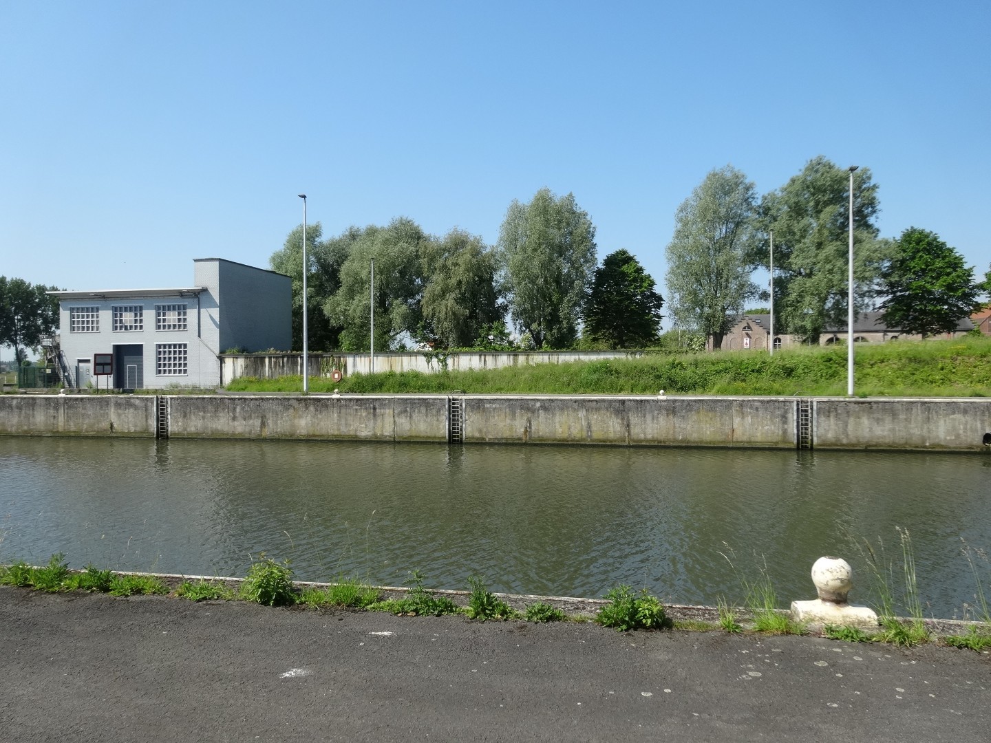 Huidig en achtergelegen voormalig pomphuis aan het kanaal Bossuit-Kortrijk