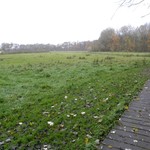 Zicht op graslanden ten noorden van het kasteel van Nieuwenhoven, waar in de 17de eeuw de grote boomgaard en akker 'Den Hulst' zich bevonden