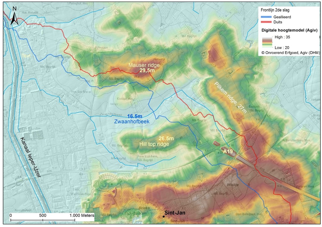 Situering van de strategische hoogtes op het vml. slagveld van Pilkem ridge