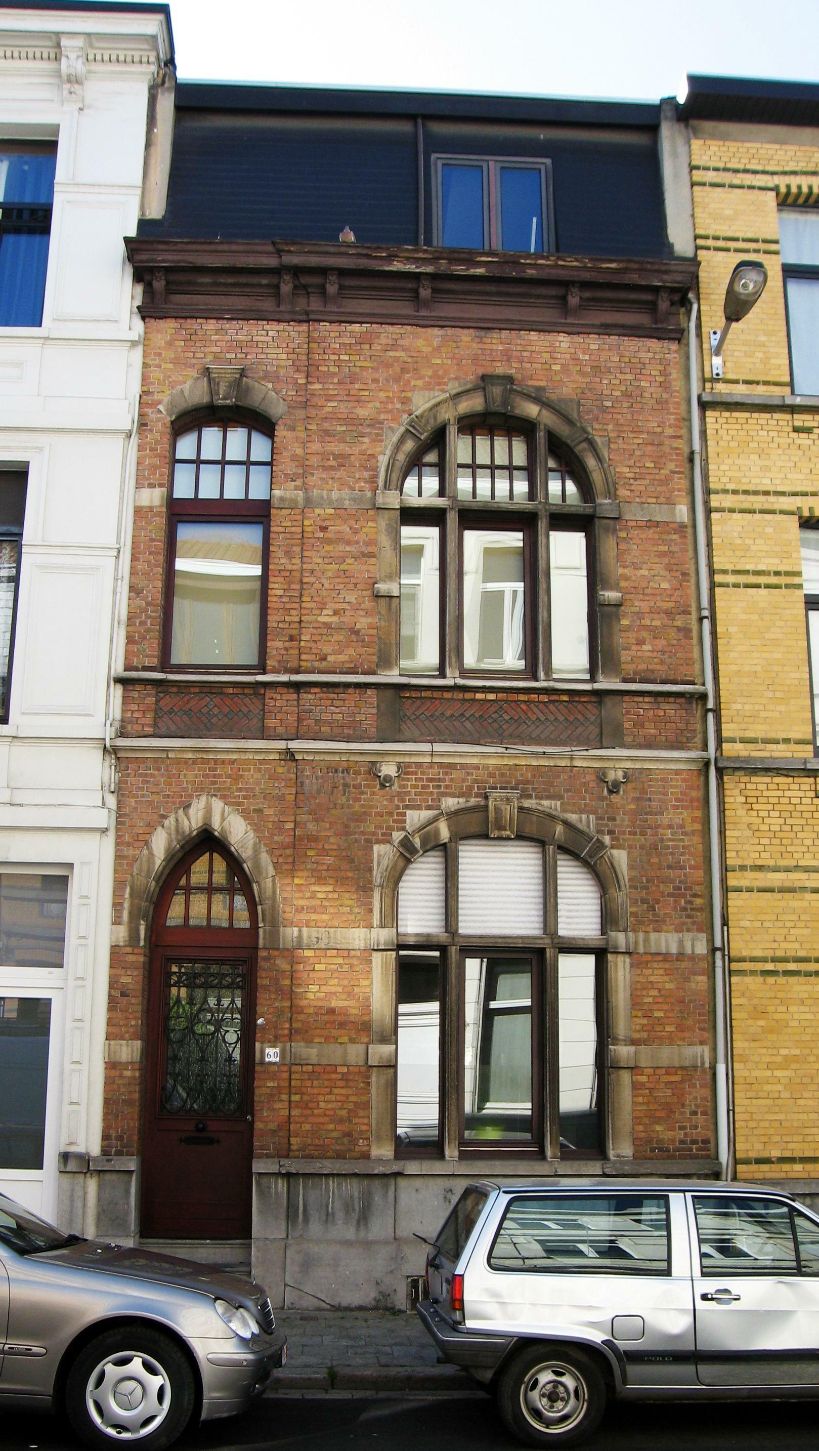 De afbeelding 'Antwerpen Cobdenstraat 60' gemaakt door Braeken, Jo wordt ter beschikking gesteld door Agentschap Onroerend Erfgoed (AOE) onder de volgende voorwaarden: Modellicentie voor gratis hergebruik, Naamsvermelding 4.0 Internationaal.