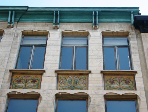 De afbeelding 'Antwerpen Zénobe Grammestraat 34 mozaïekpanelen' gemaakt door Braeken, Jo wordt ter beschikking gesteld door Agentschap Onroerend Erfgoed (AOE) onder de volgende voorwaarden: Modellicentie voor gratis hergebruik, Naamsvermelding 4.0 Internationaal.