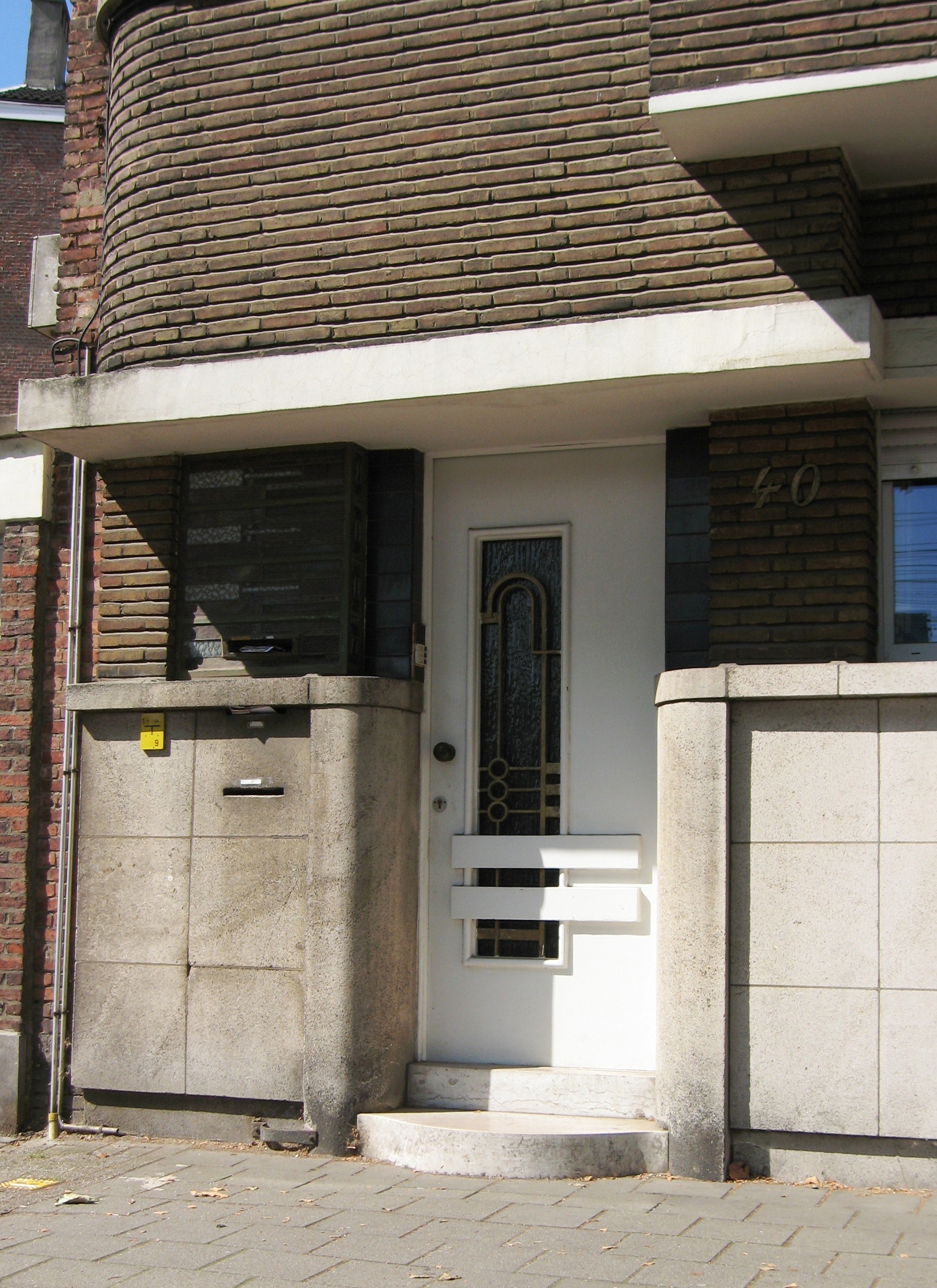 De afbeelding 'Antwerpen Cuperusstraat 40 portaal' gemaakt door Braeken, Jo wordt ter beschikking gesteld door Agentschap Onroerend Erfgoed (AOE) onder de volgende voorwaarden: Modellicentie voor gratis hergebruik, Naamsvermelding 4.0 Internationaal.