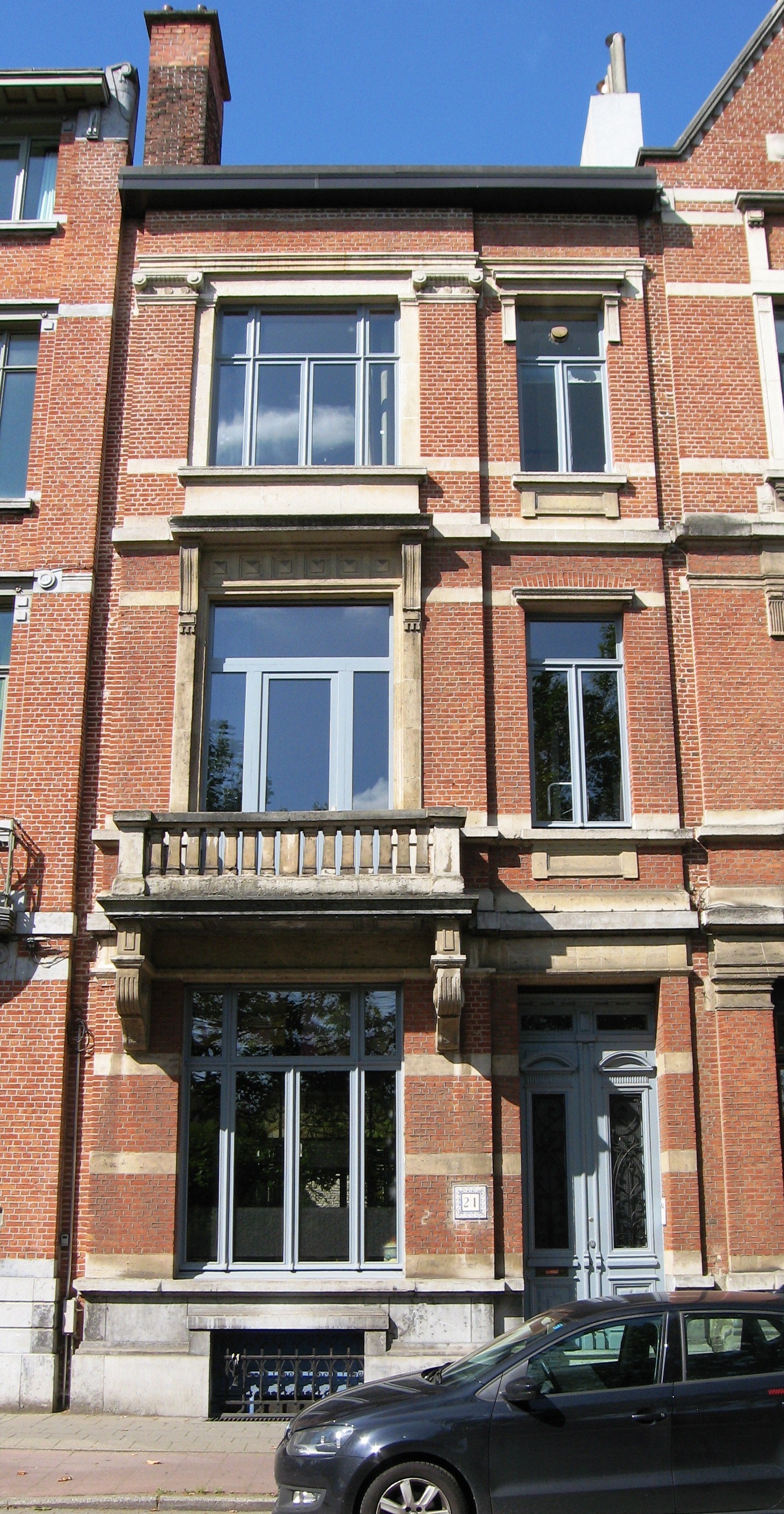 De afbeelding 'Antwerpen Stanleystraat 21' gemaakt door Braeken, Jo wordt ter beschikking gesteld door Agentschap Onroerend Erfgoed (AOE) onder de volgende voorwaarden: Modellicentie voor gratis hergebruik, Naamsvermelding 4.0 Internationaal.