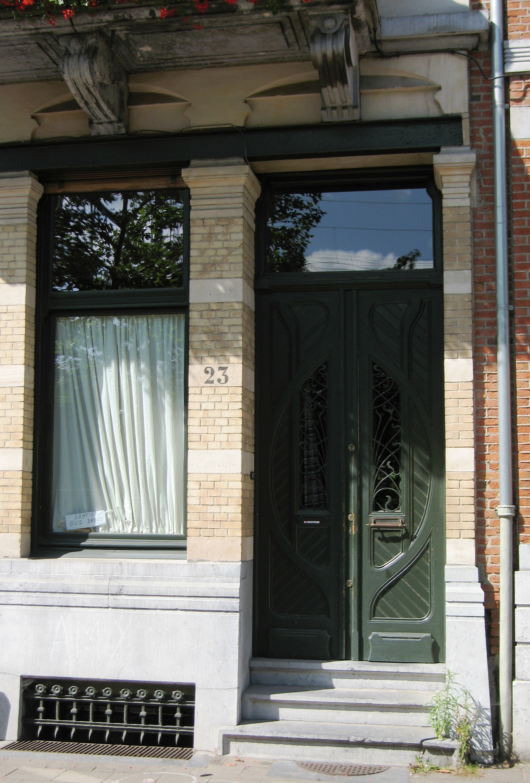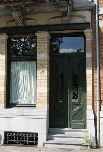 De afbeelding 'Antwerpen Stanleystraat 23 portaal' gemaakt door Braeken, Jo wordt ter beschikking gesteld door Agentschap Onroerend Erfgoed (AOE) onder de volgende voorwaarden: Modellicentie voor gratis hergebruik, Naamsvermelding 4.0 Internationaal.