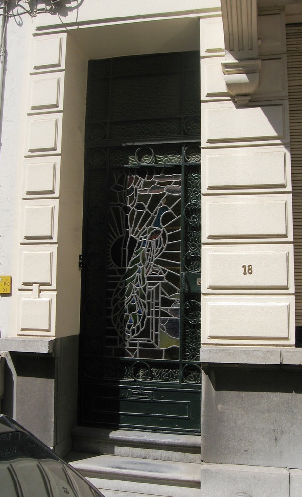De afbeelding 'Antwerpen Zurenborgstraat 18 deur' gemaakt door Braeken, Jo wordt ter beschikking gesteld door Agentschap Onroerend Erfgoed (AOE) onder de volgende voorwaarden: Modellicentie voor gratis hergebruik, Naamsvermelding 4.0 Internationaal.