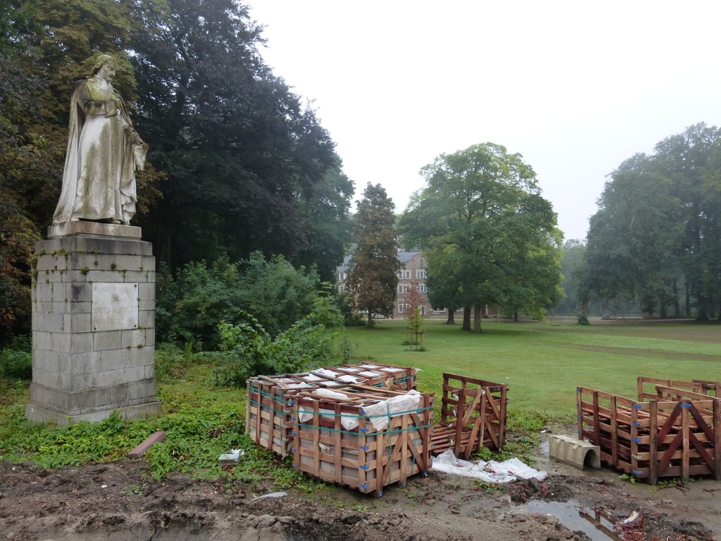 De afbeelding 'parkdomein met heiligenbeeld van pedagoog J.B. de la Salle in de kloostertuin van de St.-Wivina-abdij' gemaakt door Himpe, Koen wordt ter beschikking gesteld door Agentschap Onroerend Erfgoed (AOE) onder de volgende voorwaarden: Modellicentie voor gratis hergebruik, Naamsvermelding 4.0 Internationaal.