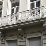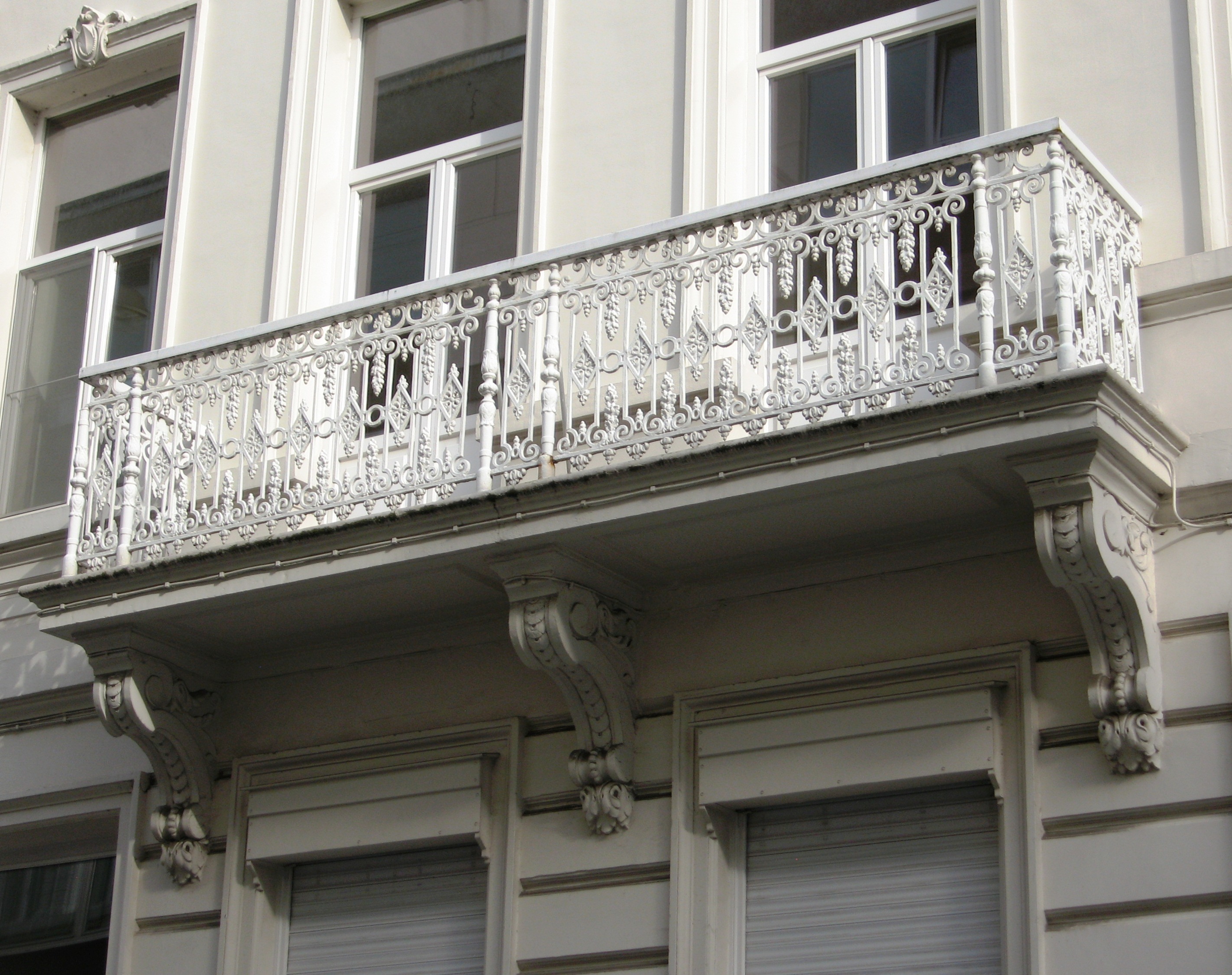 De afbeelding 'Antwerpen Rembrandtstraat 25 balkon' gemaakt door Braeken, Jo wordt ter beschikking gesteld door Agentschap Onroerend Erfgoed (AOE) onder de volgende voorwaarden: Modellicentie voor gratis hergebruik, Naamsvermelding 4.0 Internationaal.