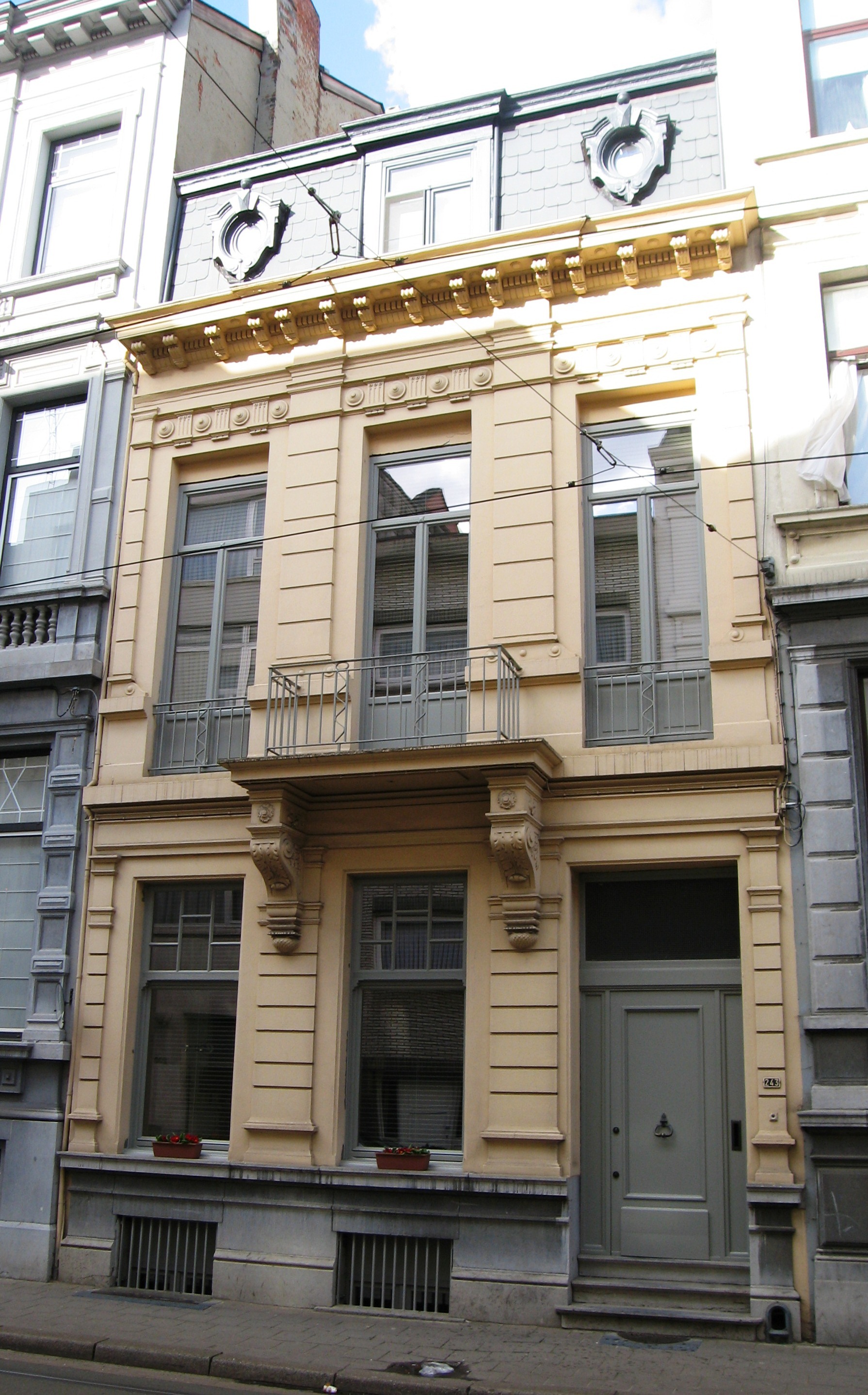 De afbeelding 'Antwerpen Lange Leemstraat 243' gemaakt door Braeken, Jo wordt ter beschikking gesteld door Agentschap Onroerend Erfgoed (AOE) onder de volgende voorwaarden: Modellicentie voor gratis hergebruik, Naamsvermelding 4.0 Internationaal.