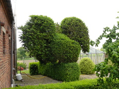 De afbeelding 'Brakel Nederbrakel Termergelstraat 46 Topiary van buxus (1)' gemaakt door Van der Linden, Geert wordt ter beschikking gesteld door Agentschap Onroerend Erfgoed (AOE) onder de volgende voorwaarden: Modellicentie voor gratis hergebruik, Naamsvermelding 4.0 Internationaal.