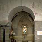 Parochiekerk Sint-Anna: interieur, muurschildering, algemeen zicht van rondboog met muurschilderingen 'Sint-Barbara, Sint-Margaretha'