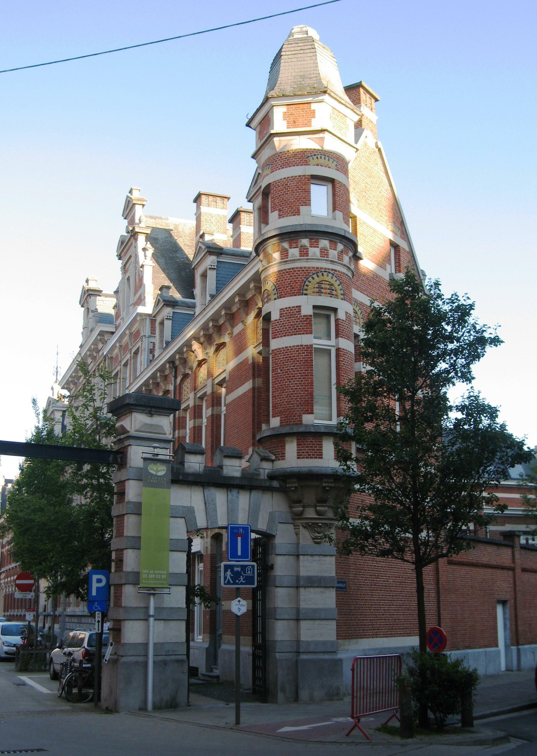 De afbeelding 'Antwerpen Militair Hospitaal dienstwoningen hoofdapotheek' gemaakt door Braeken, Jo wordt ter beschikking gesteld door Agentschap Onroerend Erfgoed (AOE) onder de volgende voorwaarden: Modellicentie voor gratis hergebruik, Naamsvermelding 4.0 Internationaal.