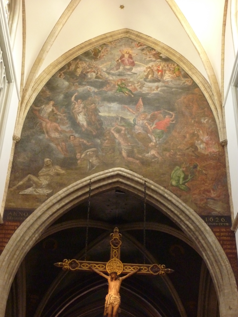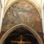De afbeelding 'Sint-Truiden Kerk Onze-Lieve-Vrouw Hemelvaart muurschildering op triomfboog' gemaakt door Jacobs, Els wordt ter beschikking gesteld door Agentschap Onroerend Erfgoed (AOE) onder de volgende voorwaarden: Modellicentie voor gratis hergebruik, Naamsvermelding 4.0 Internationaal.