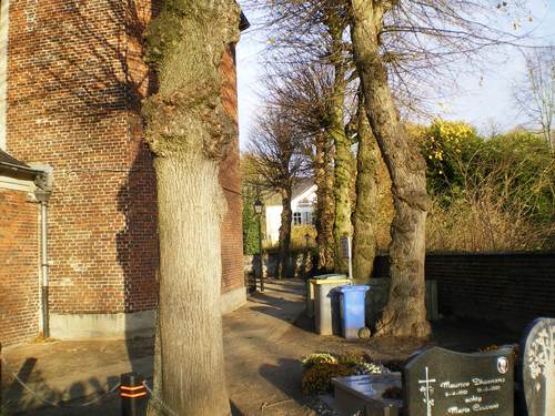 De Pinte Zevergem Dorp Bomenrij van gekandelaarde linden kerkhof (6)