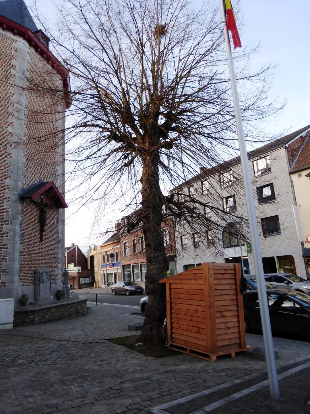 De afbeelding 'Oorlogsmonument en vredesboom' gemaakt door Vanmaele, Nele wordt ter beschikking gesteld door Agentschap Onroerend Erfgoed (AOE) onder de volgende voorwaarden: Modellicentie voor gratis hergebruik, Naamsvermelding 4.0 Internationaal.