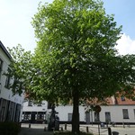 Opgaande linde als herdenkingsboom op het dorpsplein van Lissewege