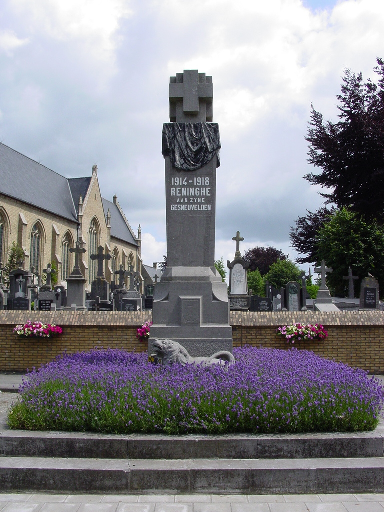 De afbeelding 'Reninge: Gedenkzuil: Overzicht' gemaakt door Decoodt, Hannelore wordt ter beschikking gesteld door Agentschap Onroerend Erfgoed (AOE) onder de volgende voorwaarden: Modellicentie voor gratis hergebruik, Naamsvermelding 4.0 Internationaal.