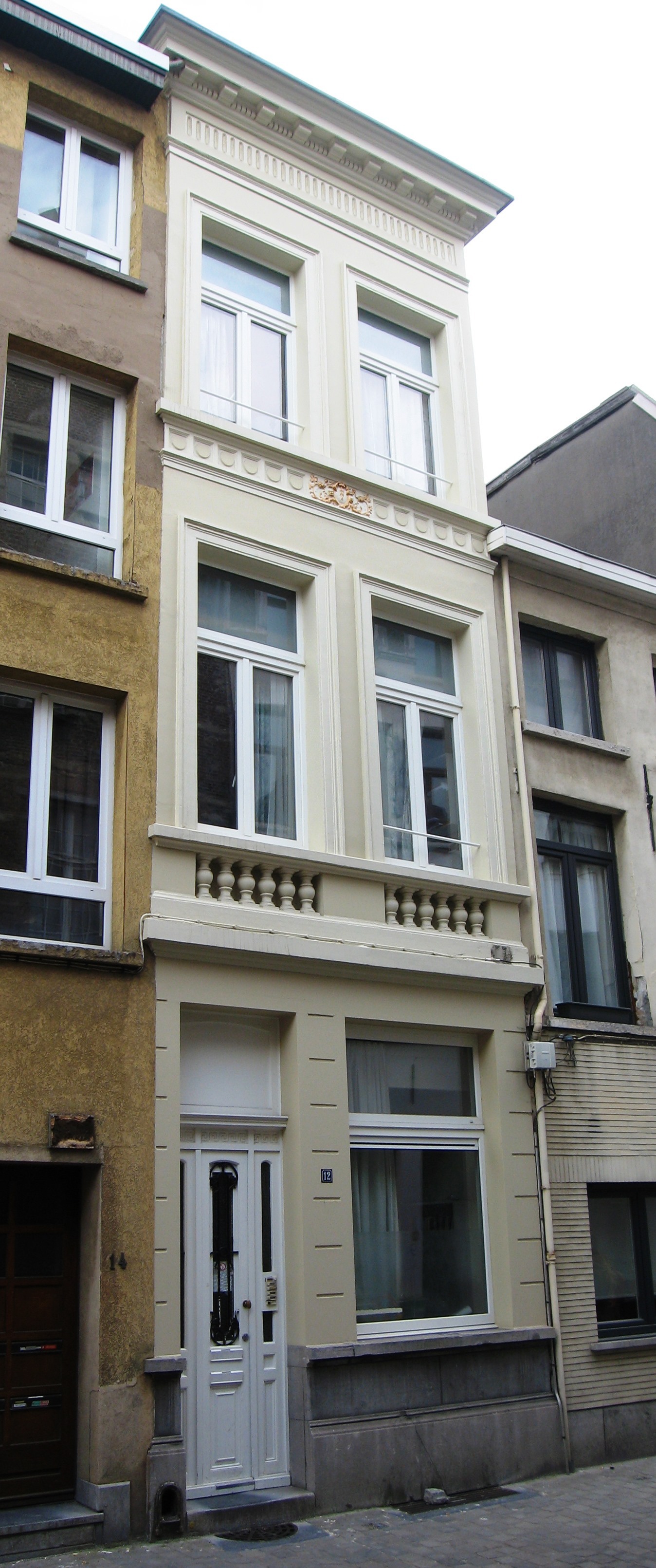 De afbeelding 'Antwerpen Prinsesstraat 12' gemaakt door Braeken, Jo wordt ter beschikking gesteld door Agentschap Onroerend Erfgoed (AOE) onder de volgende voorwaarden: Modellicentie voor gratis hergebruik, Naamsvermelding 4.0 Internationaal.