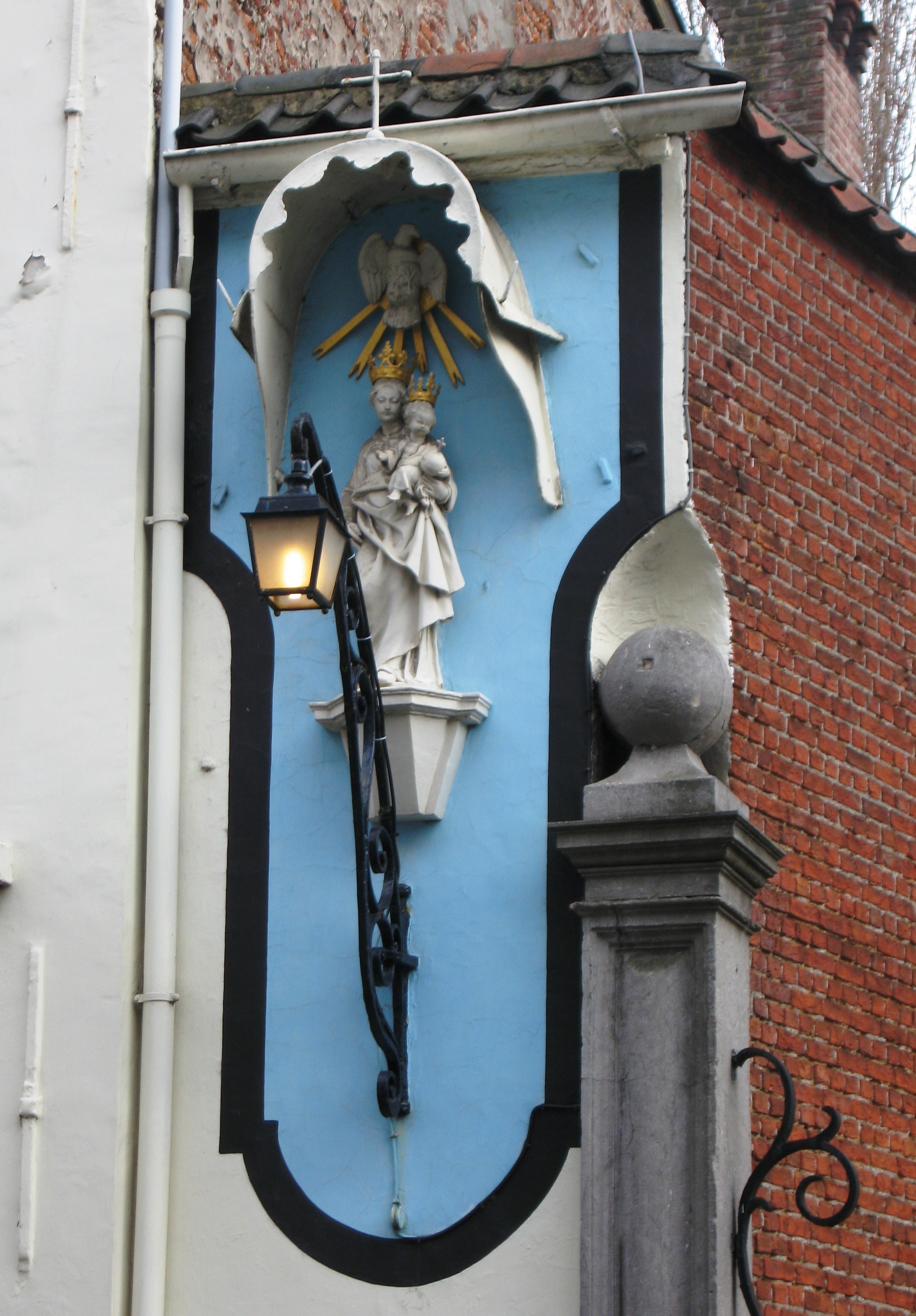 De afbeelding 'Antwerpen Rosier 20-24 Mariabeeld' gemaakt door Braeken, Jo wordt ter beschikking gesteld door Agentschap Onroerend Erfgoed (AOE) onder de volgende voorwaarden: Modellicentie voor gratis hergebruik, Naamsvermelding 4.0 Internationaal.
