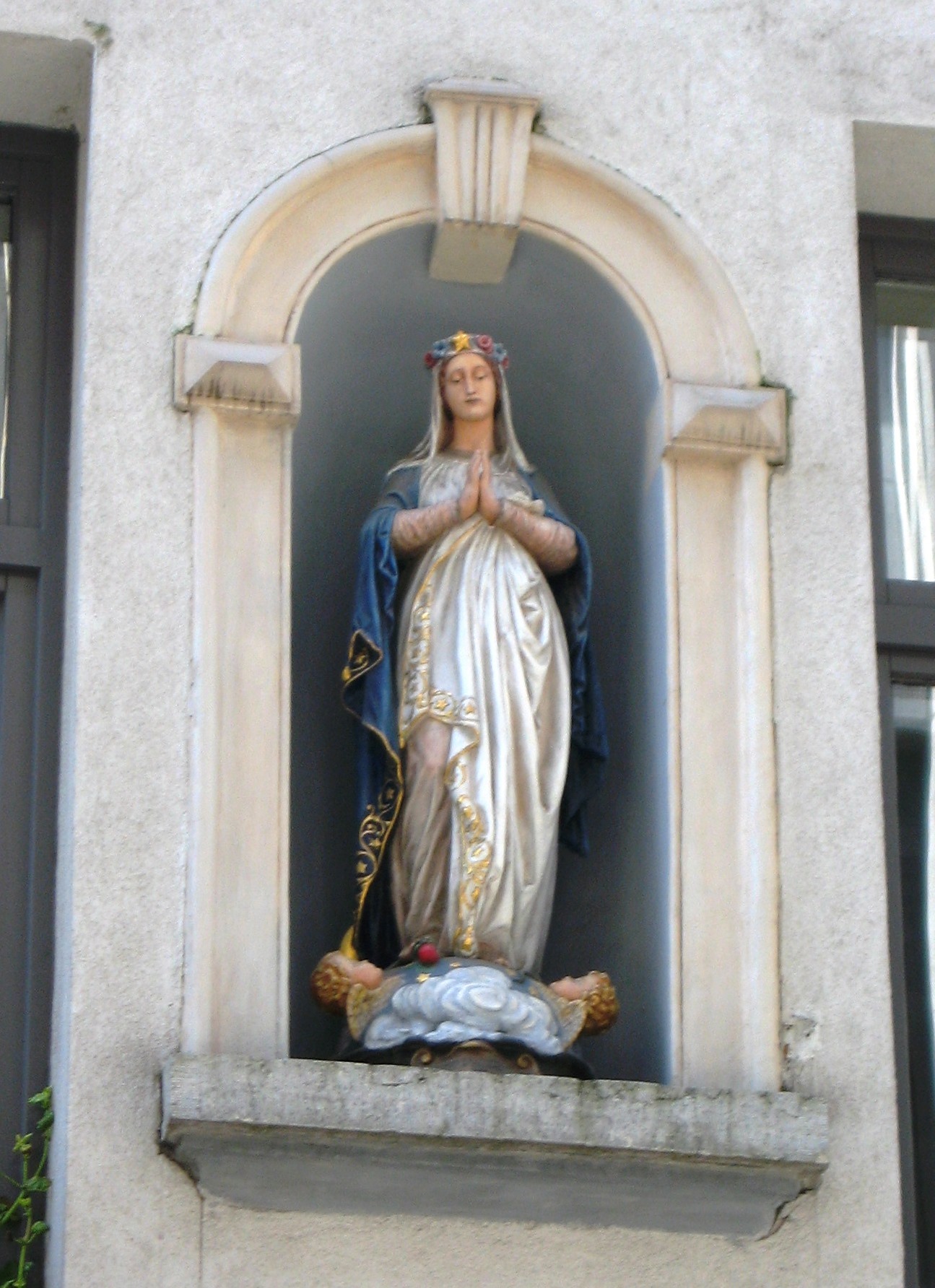 De afbeelding 'Antwerpen Jan van Lierstraat 6-8 Mariabeeld' gemaakt door Braeken, Jo wordt ter beschikking gesteld door Agentschap Onroerend Erfgoed (AOE) onder de volgende voorwaarden: Modellicentie voor gratis hergebruik, Naamsvermelding 4.0 Internationaal.