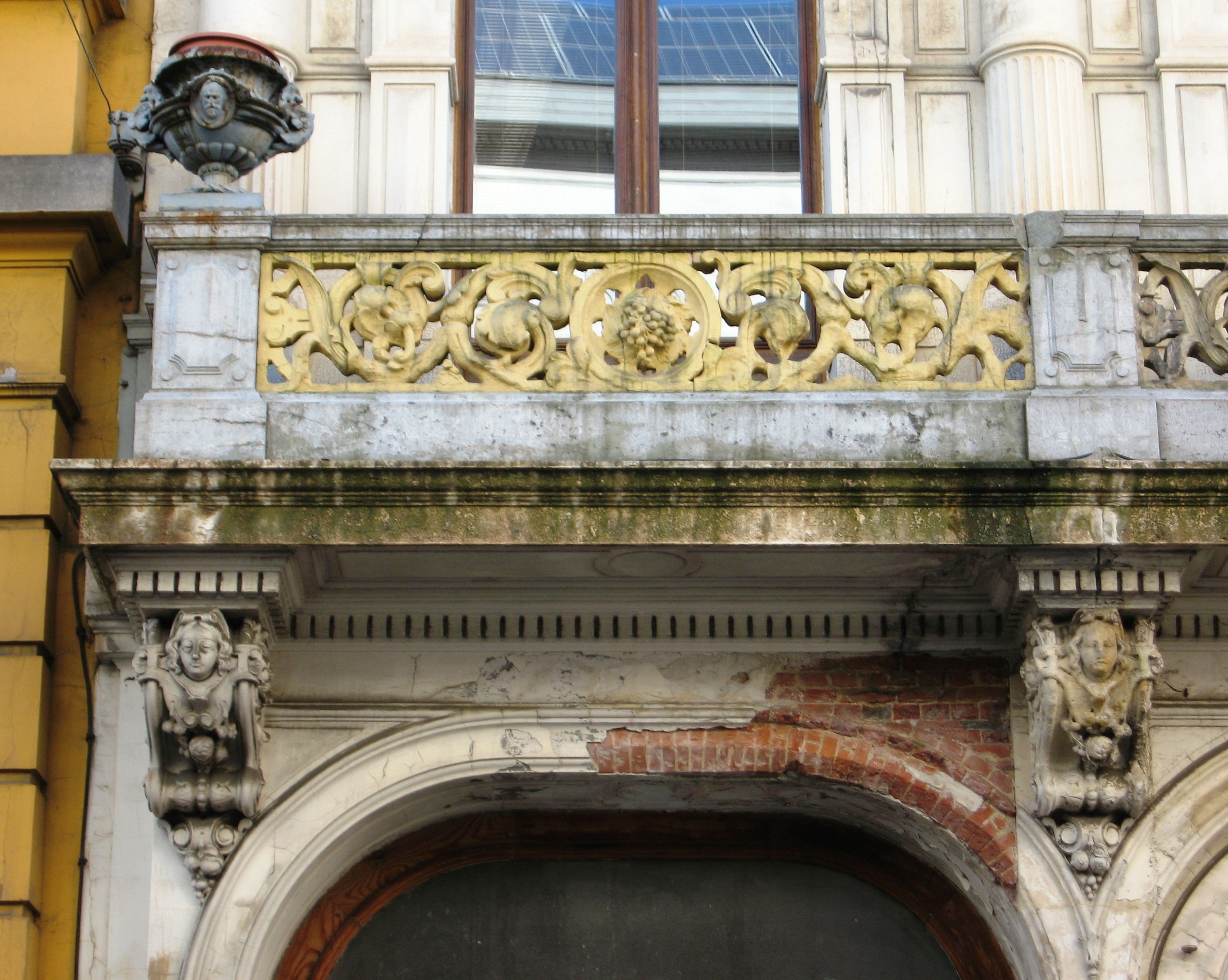 De afbeelding 'Antwerpen Lange Nieuwstraat 64 balkon' gemaakt door Braeken, Jo wordt ter beschikking gesteld door Agentschap Onroerend Erfgoed (AOE) onder de volgende voorwaarden: Modellicentie voor gratis hergebruik, Naamsvermelding 4.0 Internationaal.