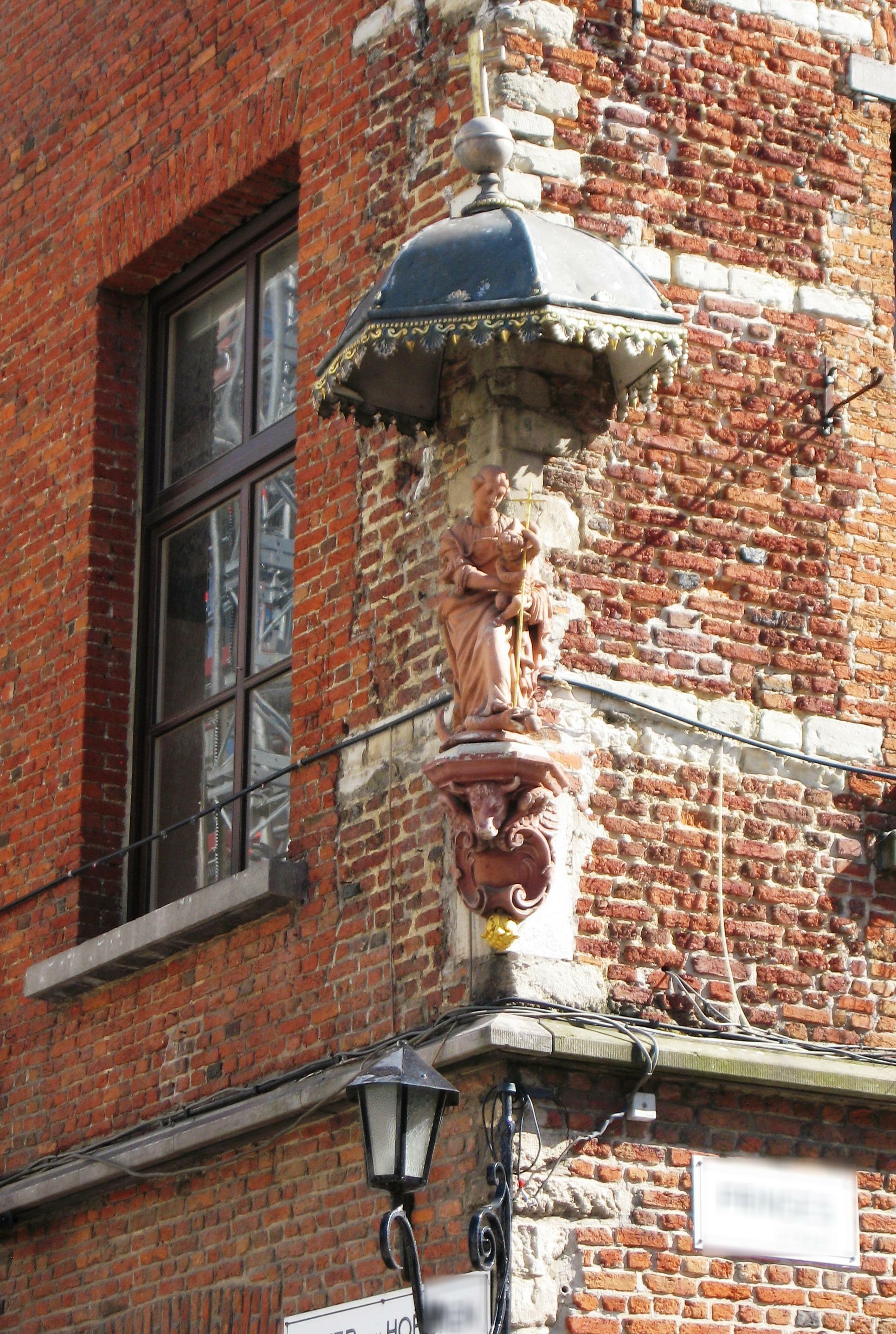 De afbeelding 'Antwerpen Pieter van Hobokenstraat 2 Mariabeeld' gemaakt door Braeken, Jo wordt ter beschikking gesteld door Agentschap Onroerend Erfgoed (AOE) onder de volgende voorwaarden: Modellicentie voor gratis hergebruik, Naamsvermelding 4.0 Internationaal.