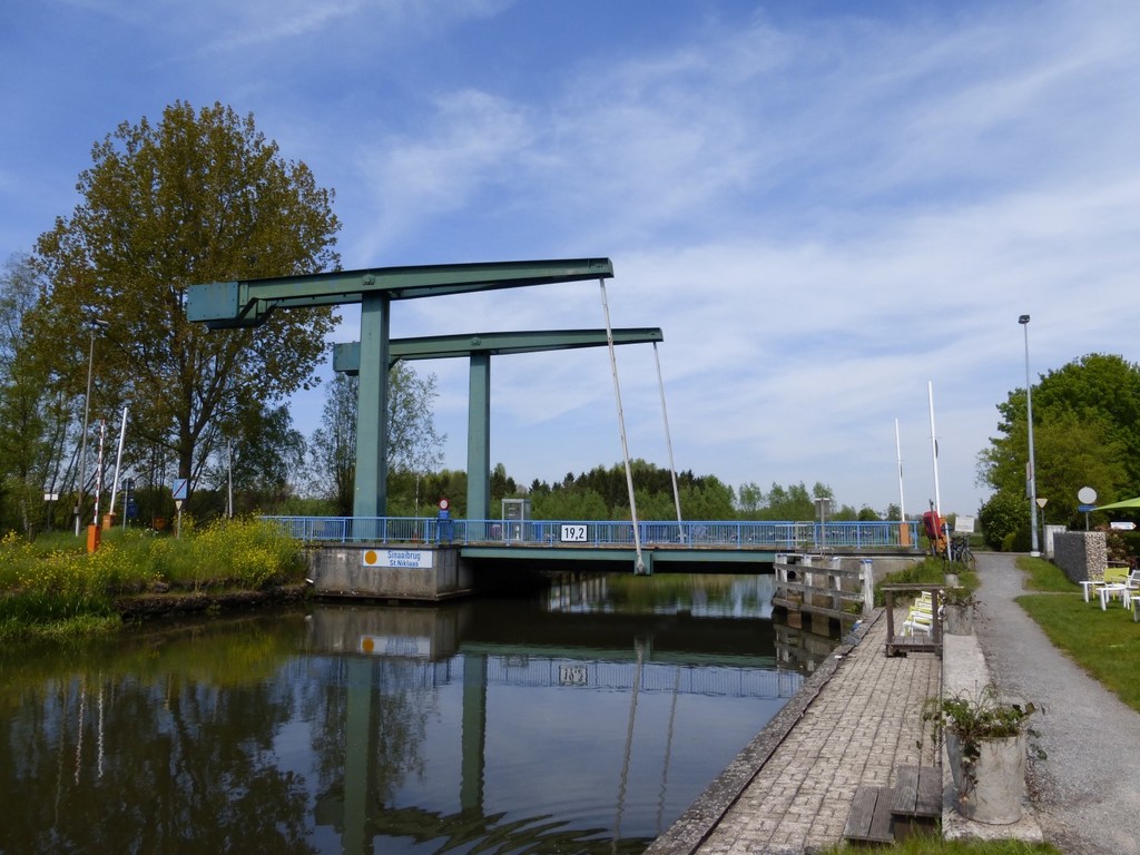 De afbeelding 'Industriele ophaalbrug over de Moervaart, Sint-Niklaas, Sinaai' gemaakt door de Haan, Aukje wordt ter beschikking gesteld door Agentschap Onroerend Erfgoed (AOE) onder de volgende voorwaarden: Modellicentie voor gratis hergebruik, Naamsvermelding 4.0 Internationaal.