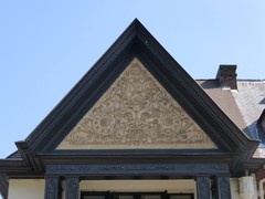 De afbeelding 'Antwerpen Turnhoutsebaan_DE 313 detail puntgevel' gemaakt door Braeken, Jo wordt ter beschikking gesteld door Agentschap Onroerend Erfgoed (AOE) onder de volgende voorwaarden: Modellicentie voor gratis hergebruik, Naamsvermelding 4.0 Internationaal.