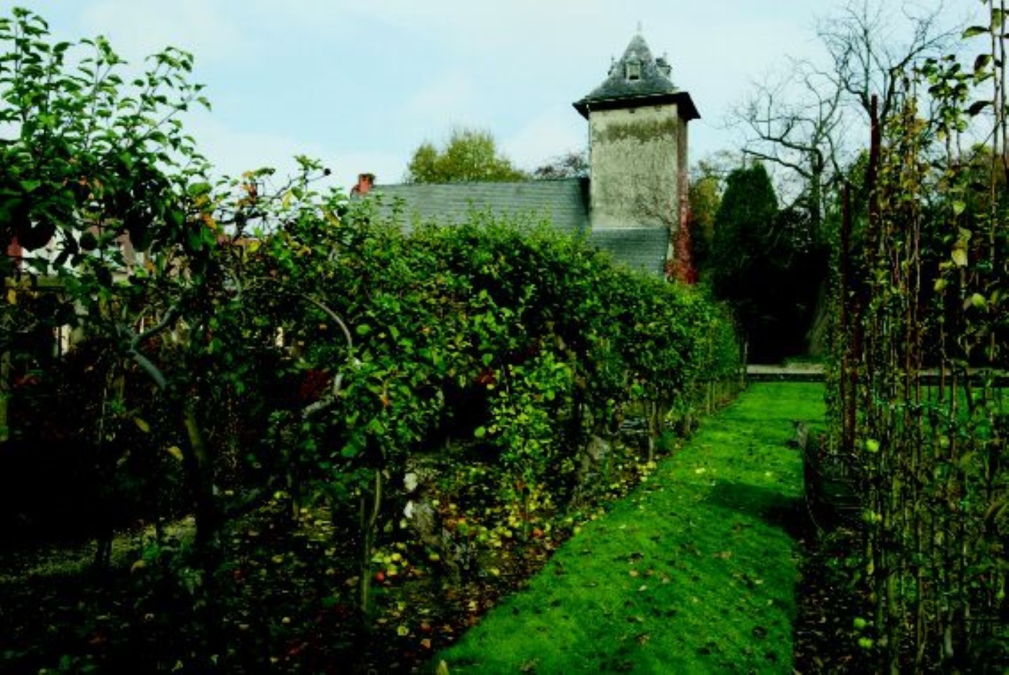 De 18de-eeuwse toren en de hernieuwde moestuin bij het kasteel De Helle.