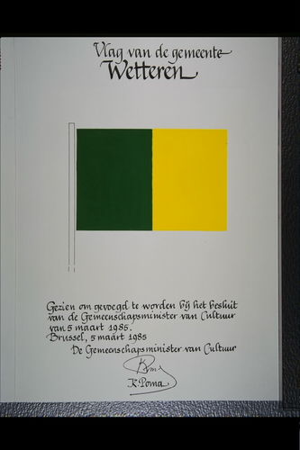 De afbeelding 'Wetteren Vlag' wordt ter beschikking gesteld door Agentschap Onroerend Erfgoed (AOE) onder de volgende voorwaarden: Modellicentie voor gratis hergebruik, Naamsvermelding 4.0 Internationaal.