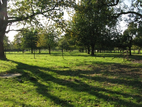 De afbeelding 'Hoogstamboomgaard met hek' gemaakt door Van Ormelingen, Jan wordt ter beschikking gesteld door Agentschap Onroerend Erfgoed (AOE) onder de volgende voorwaarden: Modellicentie voor gratis hergebruik, Naamsvermelding 4.0 Internationaal.