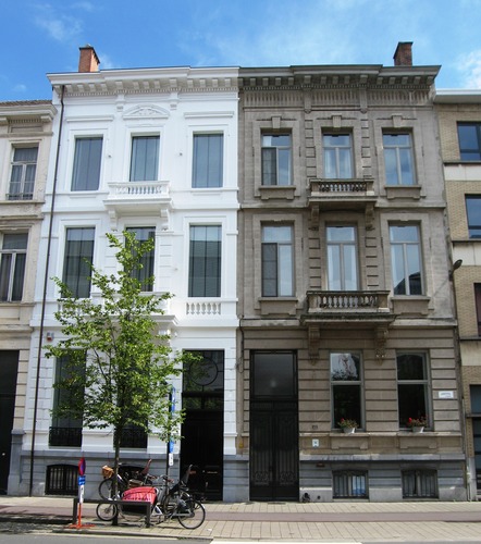 De afbeelding 'Antwerpen Justitiestraat 41-43' gemaakt door Braeken, Jo wordt ter beschikking gesteld door Agentschap Onroerend Erfgoed (AOE) onder de volgende voorwaarden: Modellicentie voor gratis hergebruik, Naamsvermelding 4.0 Internationaal.