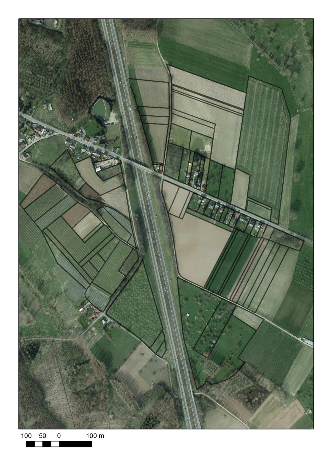 Orthofoto van de afgebakende zone van Winkelveld te Hoeselt/Rijkhoven.