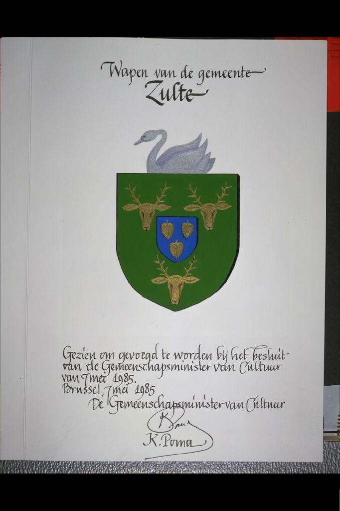 De afbeelding 'Zulte Wapenschild' wordt ter beschikking gesteld door Agentschap Onroerend Erfgoed (AOE) onder de volgende voorwaarden: Modellicentie voor gratis hergebruik, Naamsvermelding 4.0 Internationaal.