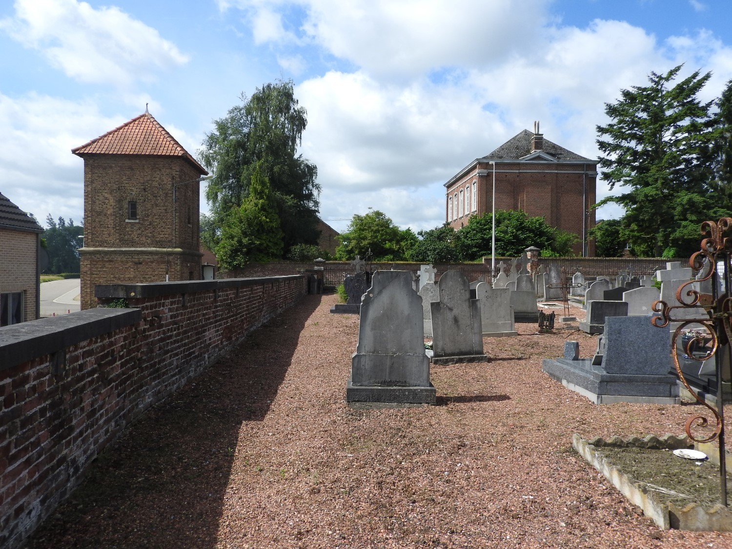 De afbeelding 'Heers Schoolstraat begraafplaats' gemaakt door Hooft, Elise wordt ter beschikking gesteld door Agentschap Onroerend Erfgoed (AOE) onder de volgende voorwaarden: Modellicentie voor gratis hergebruik, Naamsvermelding 4.0 Internationaal.